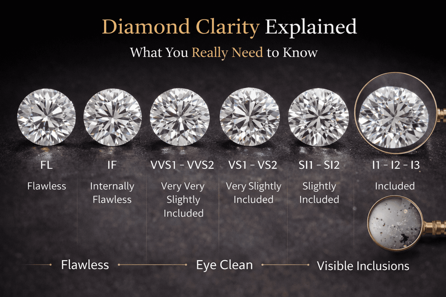 · I1 – I2 – I3 (Included) → Inclusions are visible to the naked eye and can affect transparency and brilliance.