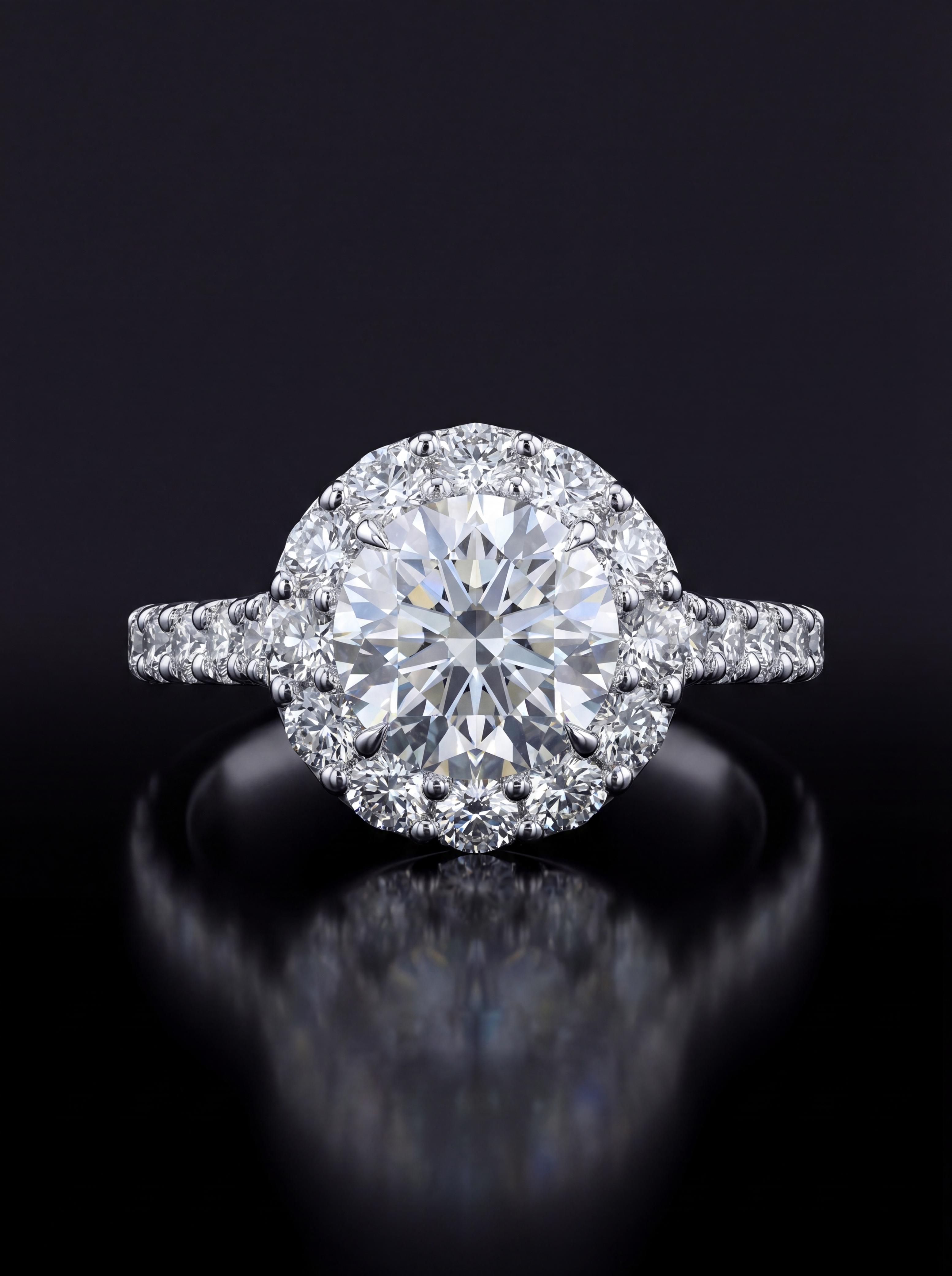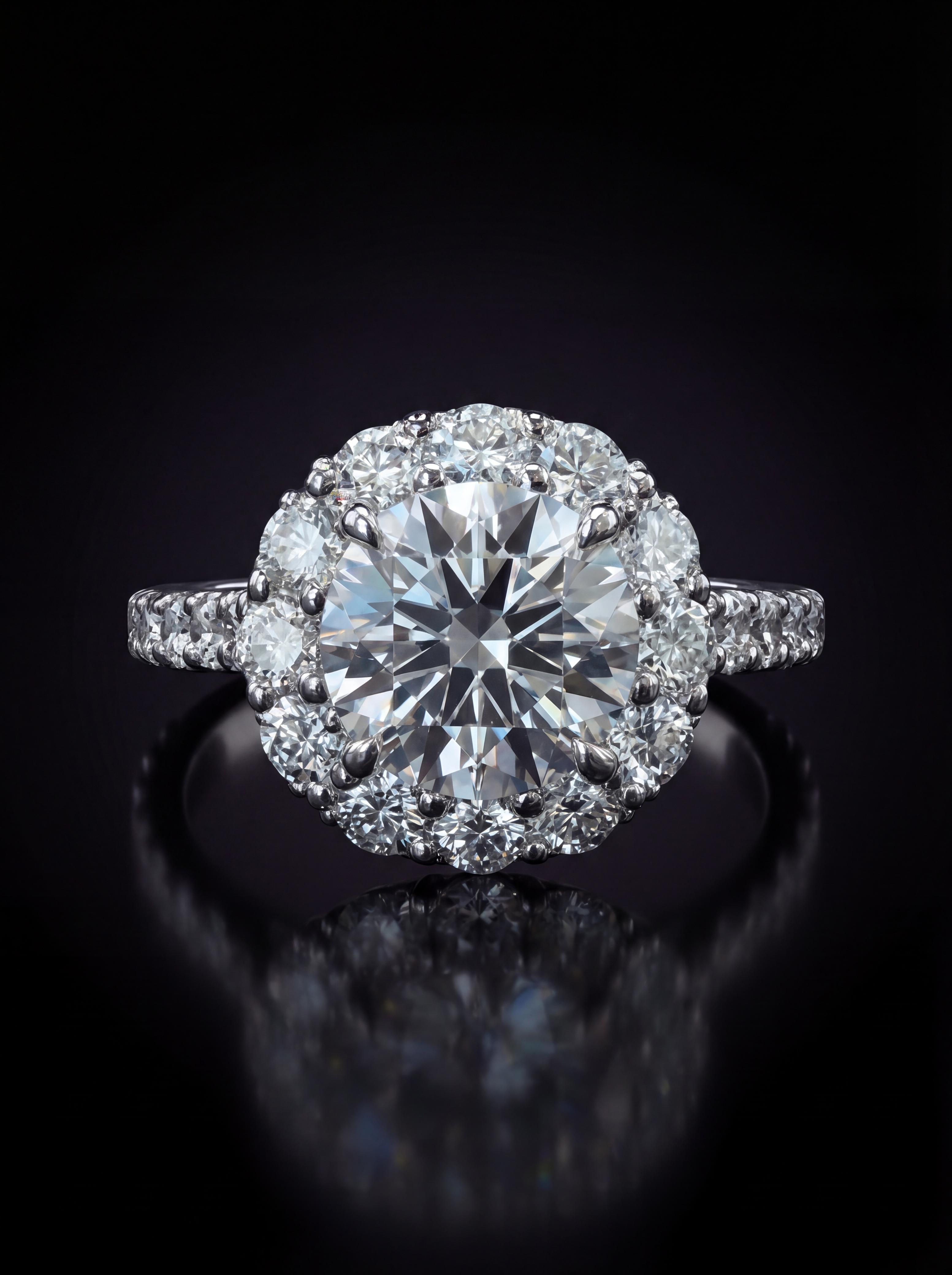 Round Diamond Ring with Halo 3.98CT