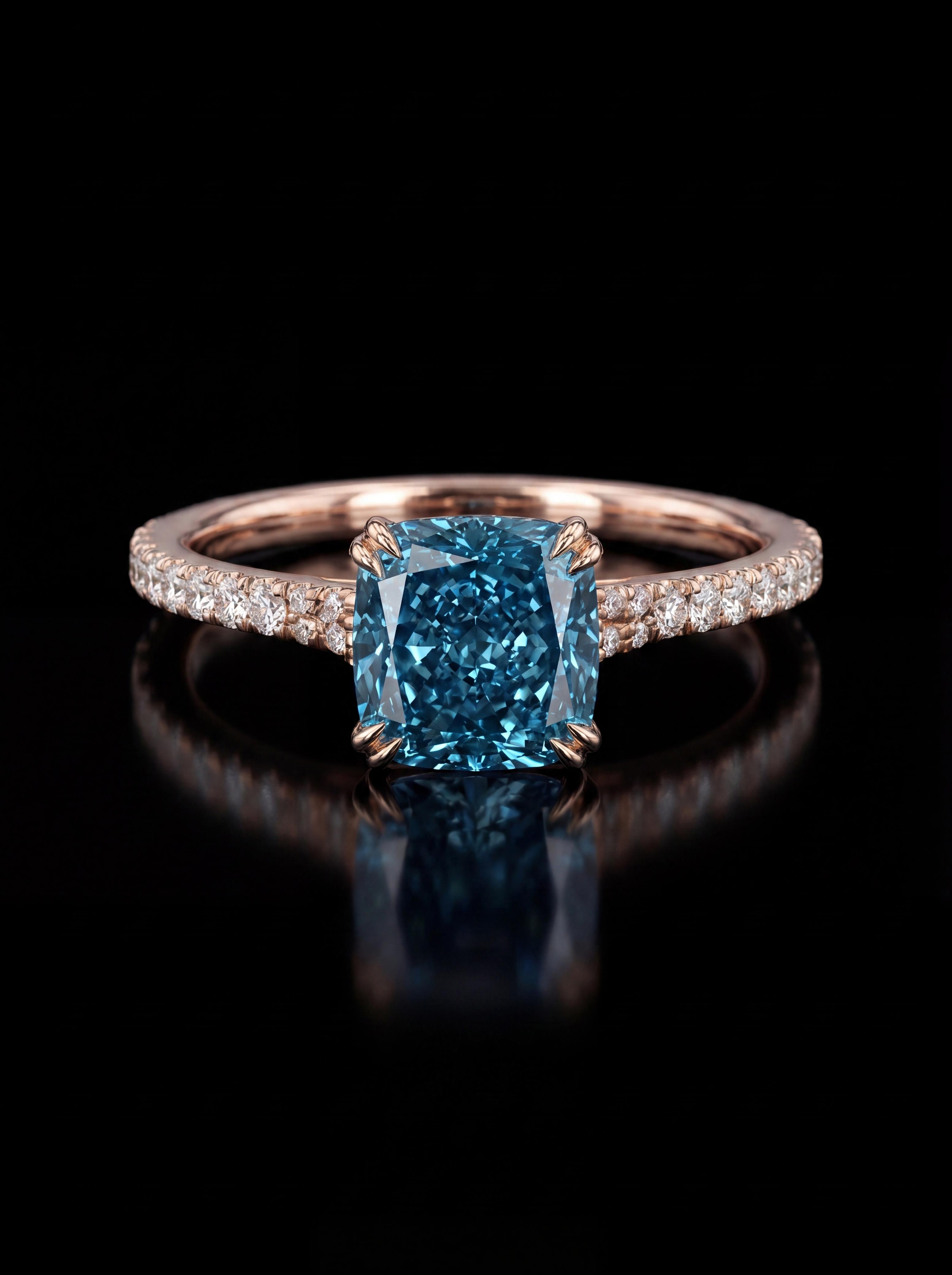 Cushion Blue Diamond Ring