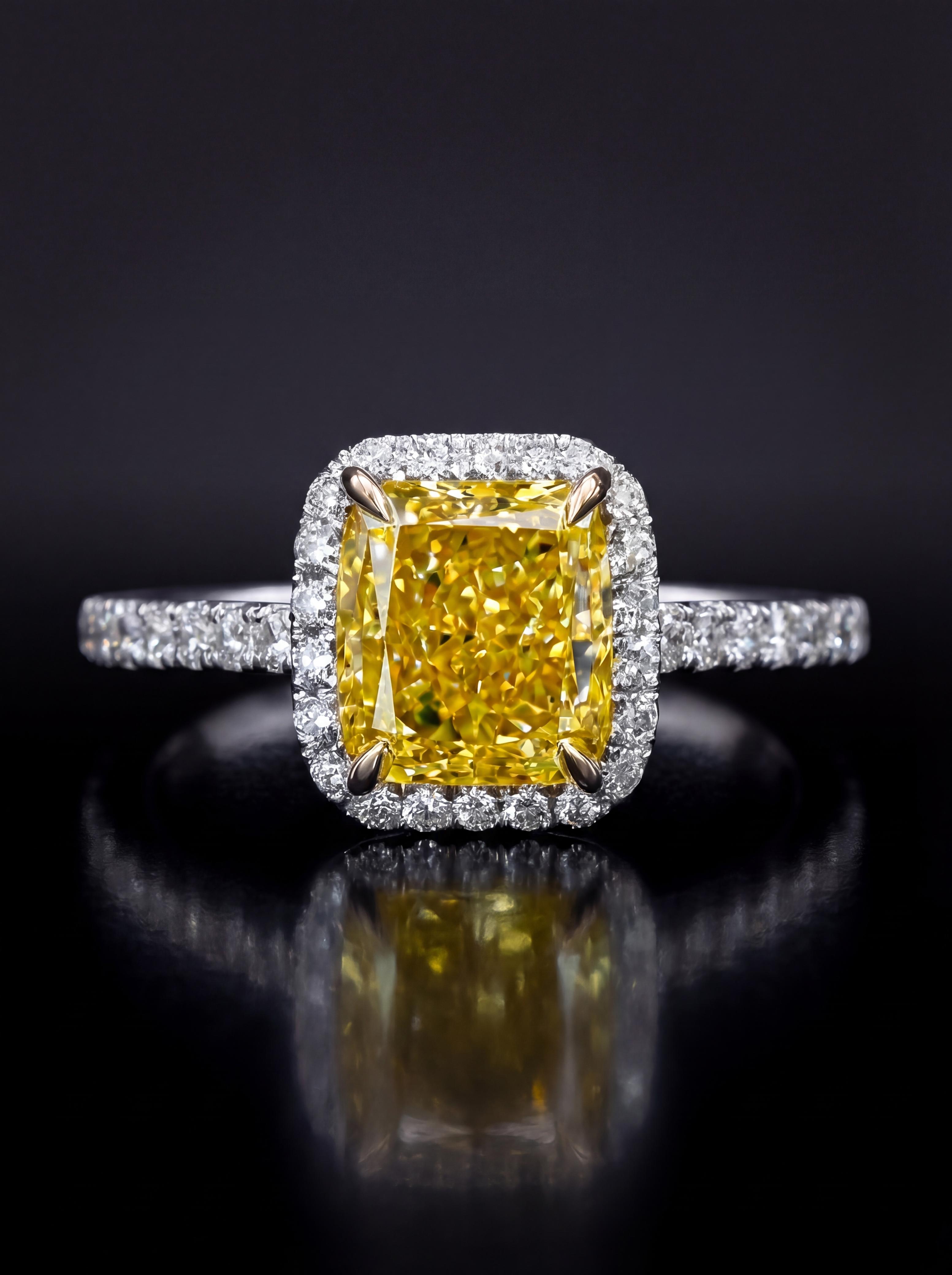 Cushion Yellow Diamond Ring with Halo