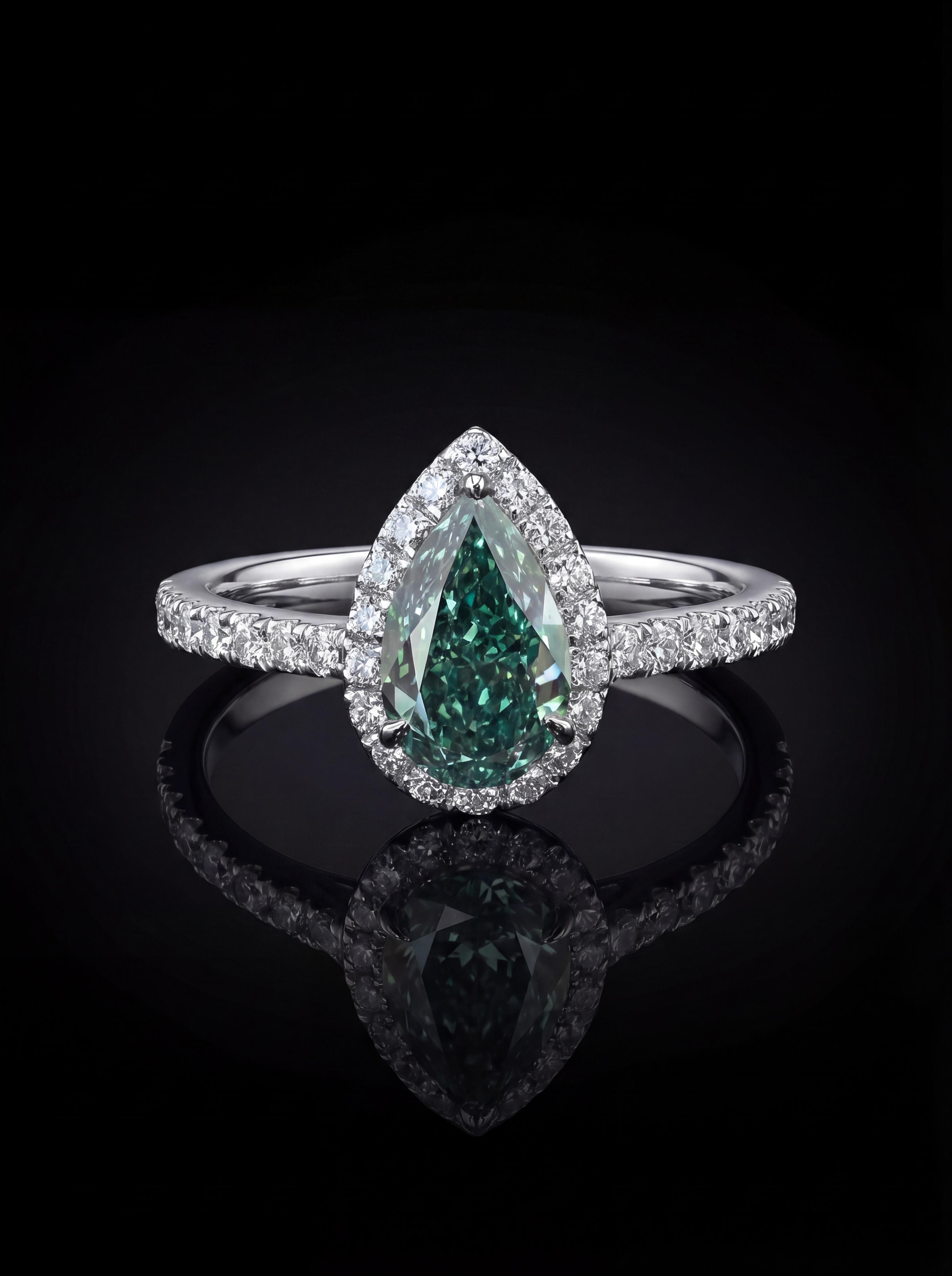 Pear Green Diamond Ring with Halo