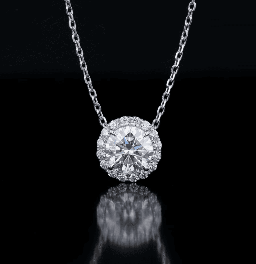 Crafted in 18KT white gold, this timeless pendant features a brilliant round diamond framed by a delicate halo of diamonds. The classic silhouette enhances the stone’s natural sparkle, creating an elegant and versatile piece that adds refined luxury to both everyday wear and special moments. Our necklaces come in a timeless standard length of 45–50 cm, and can always be adjusted to your perfect fit.