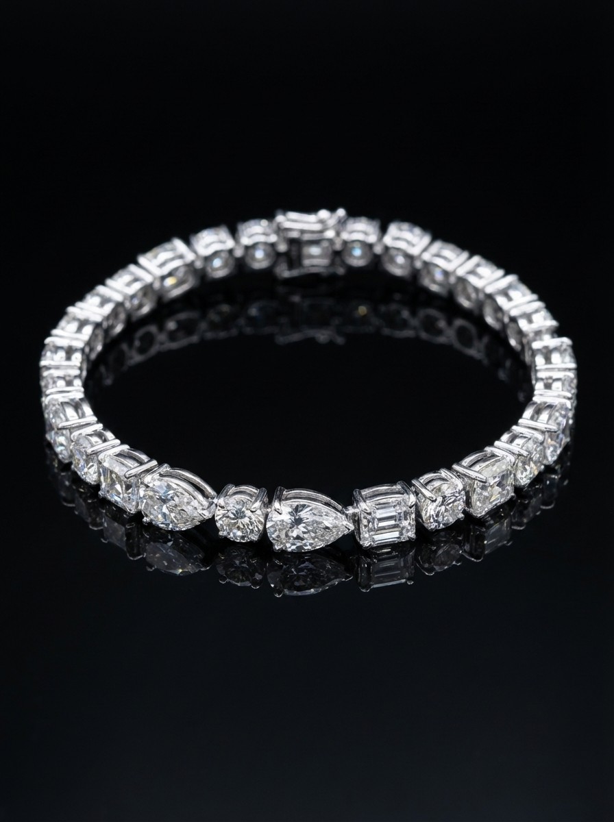 A refined 18KT white gold fancy tennis bracelet set with fancy-cut diamonds, creating a beautiful, continuous sparkle. A timeless piece that adds effortless luxury to both everyday moments and special occasions.