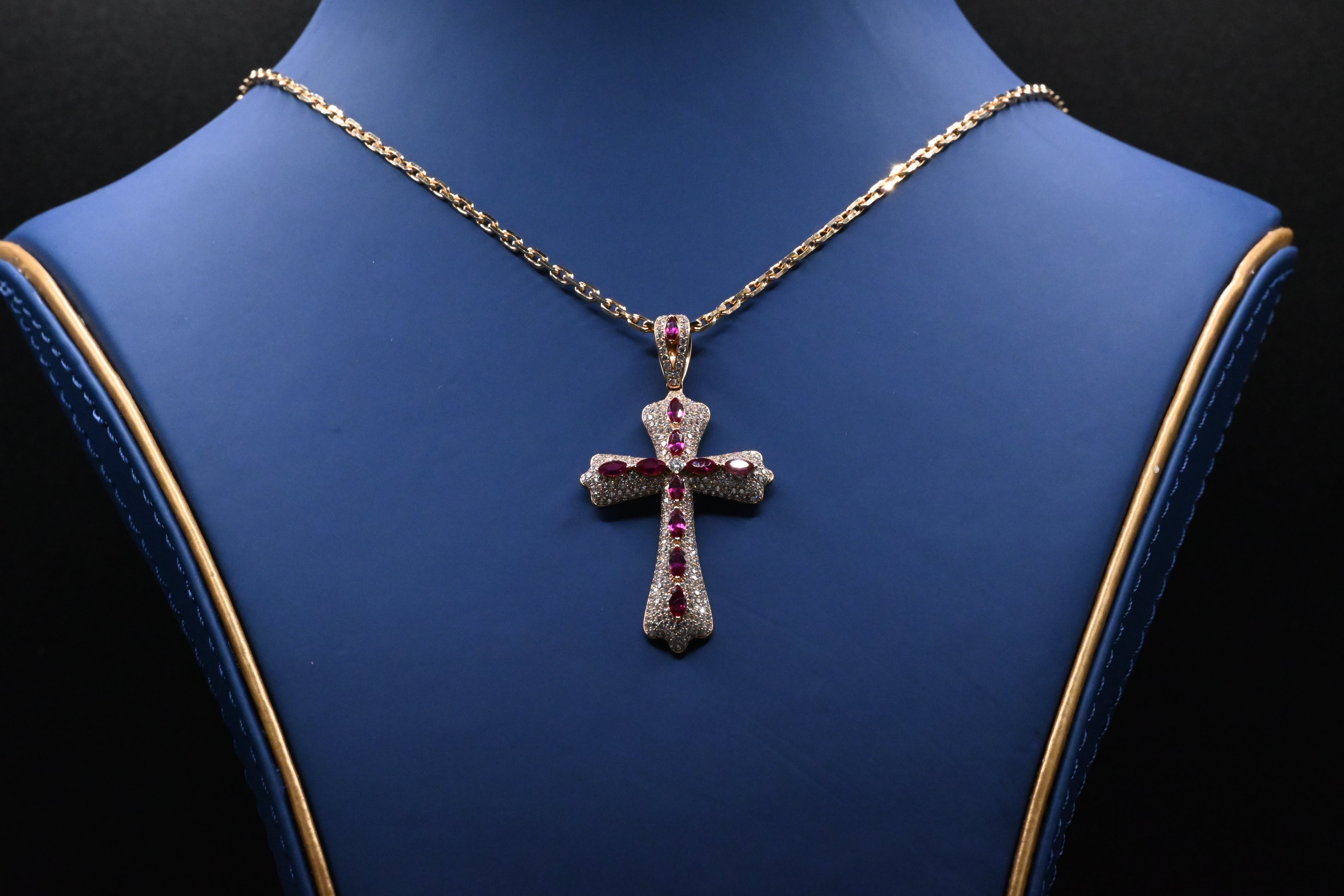 An elegant cross pendant crafted in 18KT gold, set with meticulously placed brilliant-cut diamonds. The refined proportions and detailed setting create a timeless design that combines classic symbolism with modern luxury. A sophisticated statement piece, perfect for everyday wear or meaningful occasions.