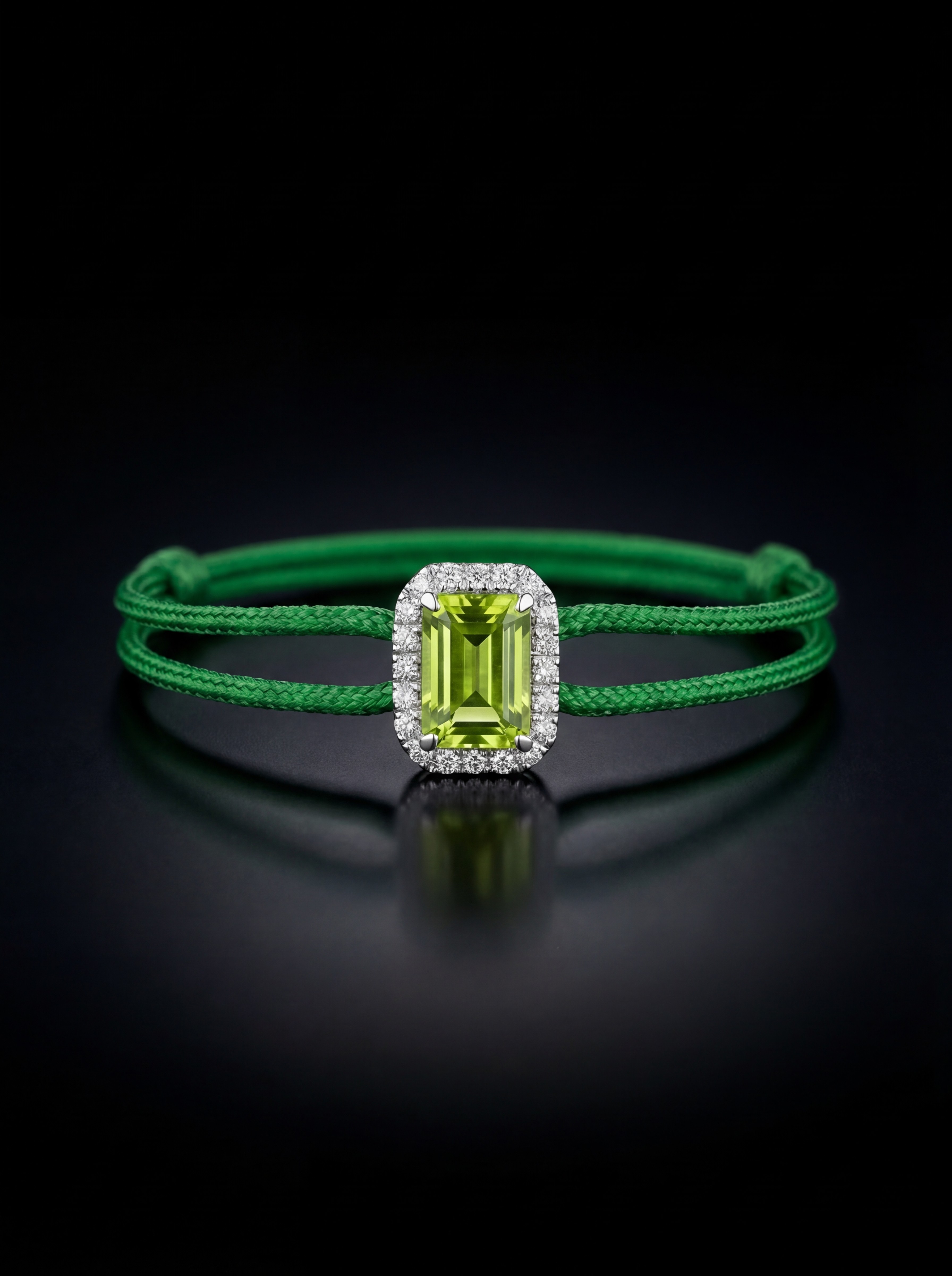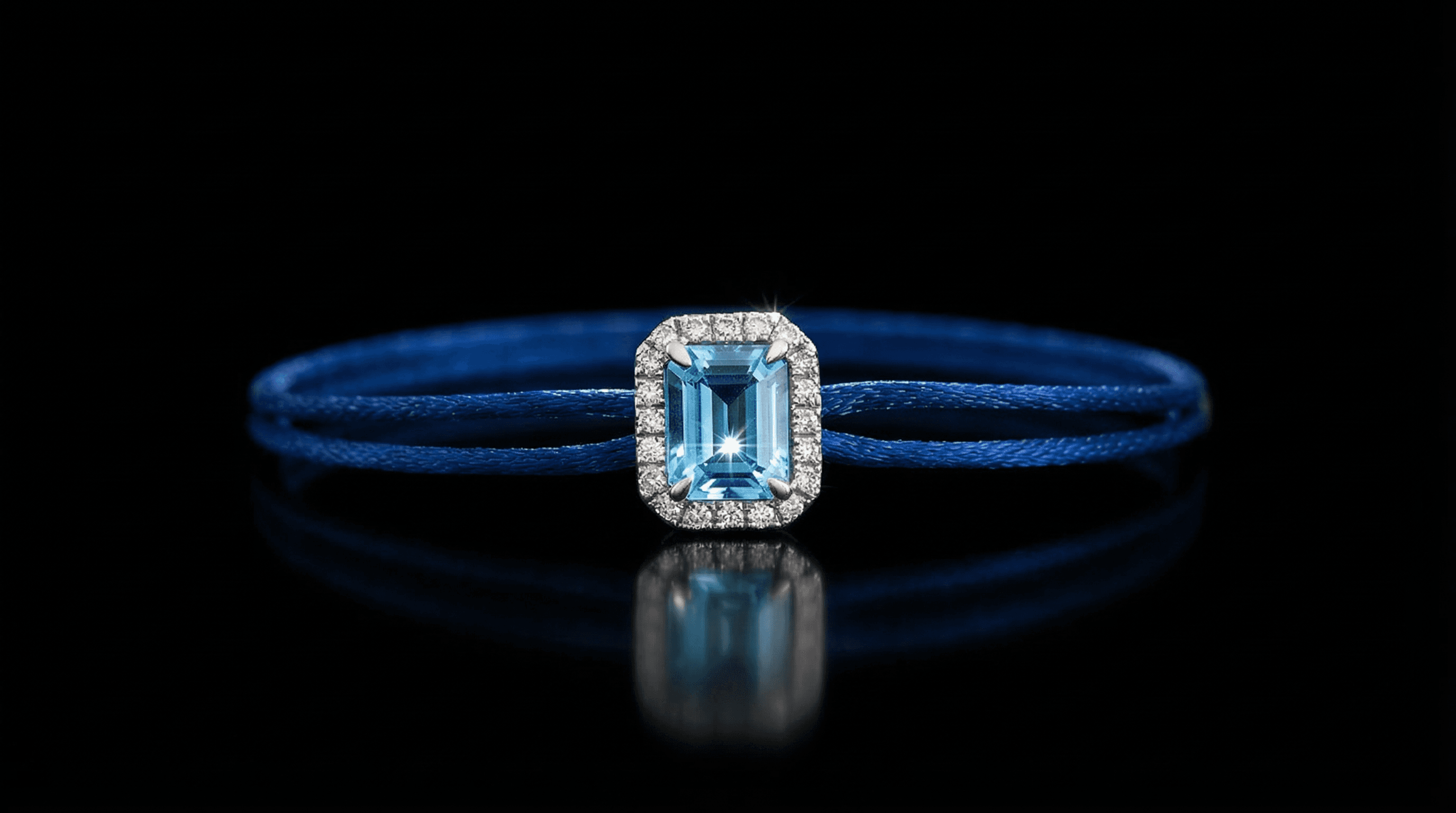 Featuring a 1 carat emerald-cut Semi-Precious Stone set in 14kt white gold, surrounded by a delicate diamond halo and finished on a refined cord. A graceful expression of personal luxury.