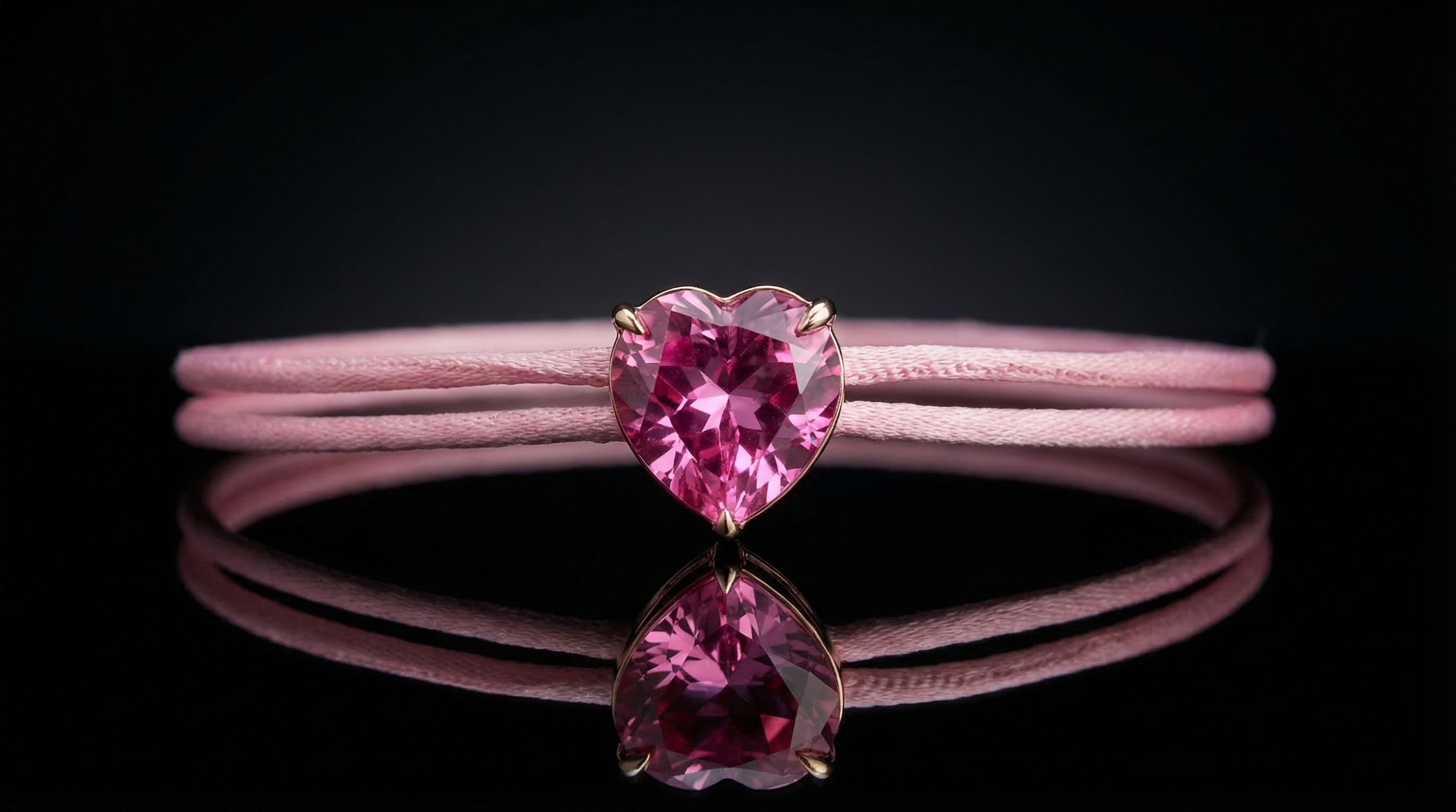Featuring a 1 carat heart-cut Semi-Precious Stone set in a 14kt rose gold setting and finished on a refined satin cord. A delicate expression of personal luxury.