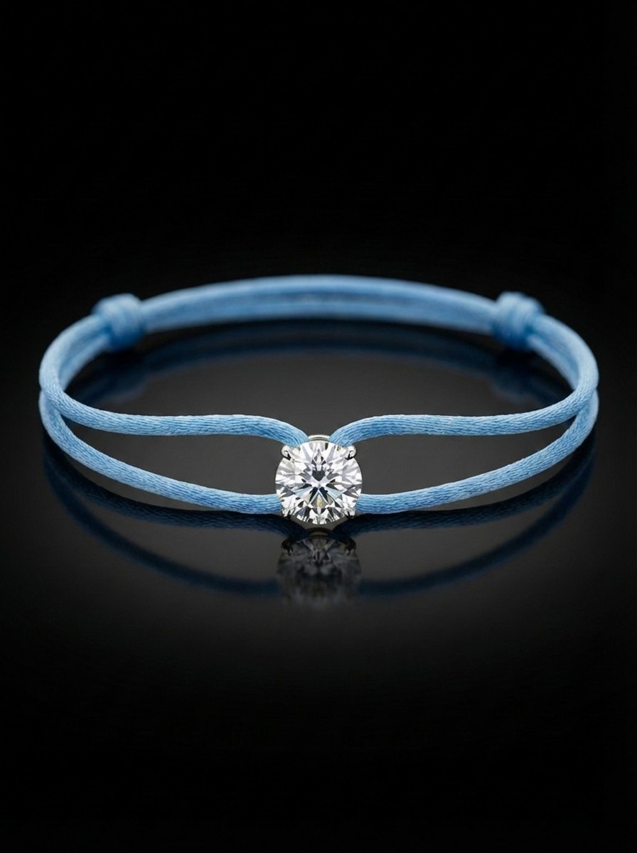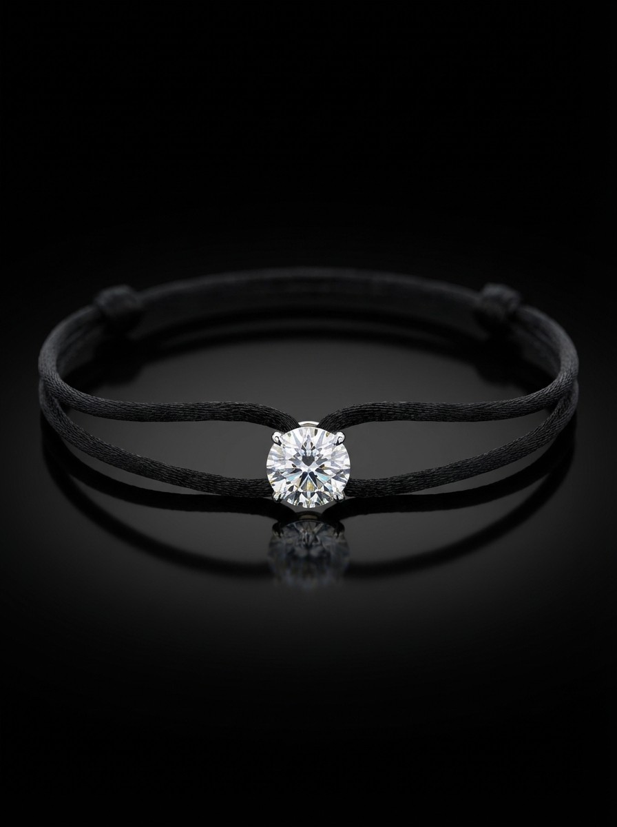 This bracelet features a 1 carat lab-grown diamond set on a refined satin cord. Designed for individuality, you can choose your preferred diamond shape, cord color, and gold color to create a piece that is uniquely yours. Simple luxury, made personal.