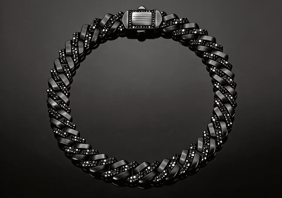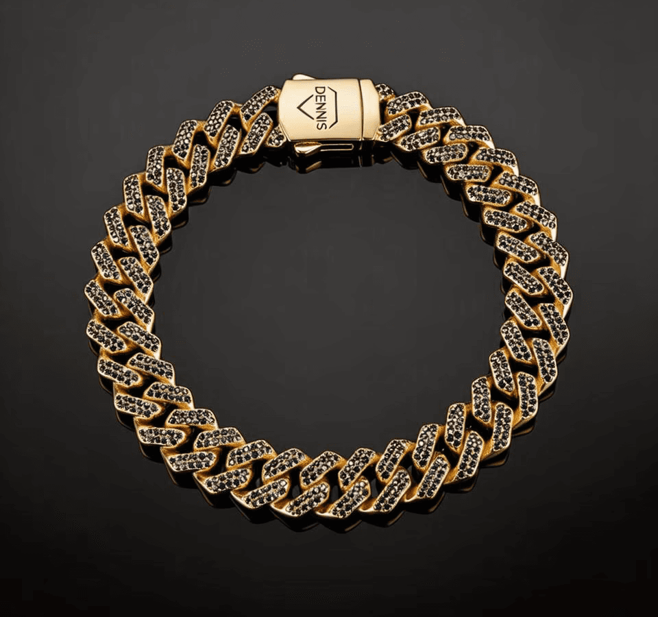 A bold and modern statement. This Cuban bracelet is set with 1502 black diamonds (9.11ct), each precisely placed to create a deep, powerful sparkle with a triple excellent cut. Finished with our signature double-sided lock - one side set with diamonds, the other in polished yellow gold - allowing the bracelet to be worn two ways while keeping the design perfectly seamless.